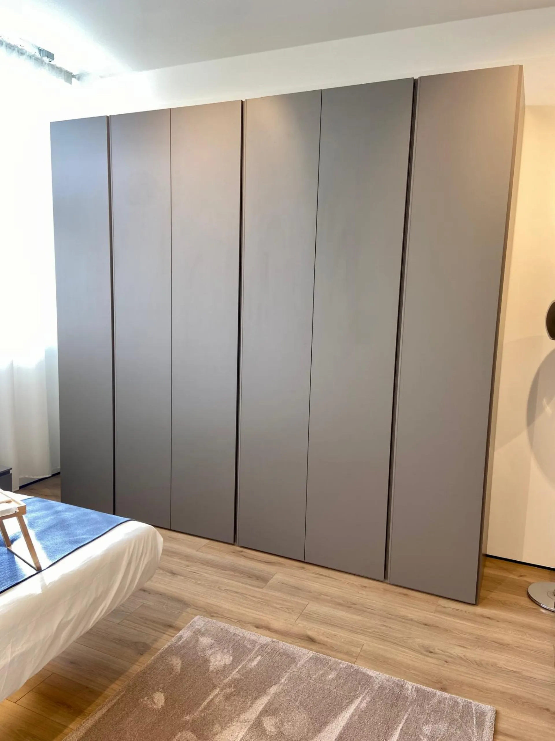 Armadio battente filo tinta Platino di Orme design con apertura a gola. L.280 H.258 prof. 61 completo di led interni con fresata su fianco per ogni modulo. Specchio interno su anta, divisore con ripiani e appendini. Cassettiera interna 3 cassetti. Servetto saliscendi per abiti, cestello estraibile. In sconto a Euro 2200,00, VISIONABILE PREVIO APPUNTAMENTO NEL PUNTO VENDITA DI CASELLE T.SE IN VIA ALLE FABBRICHE 20. TEL. 0118170952.