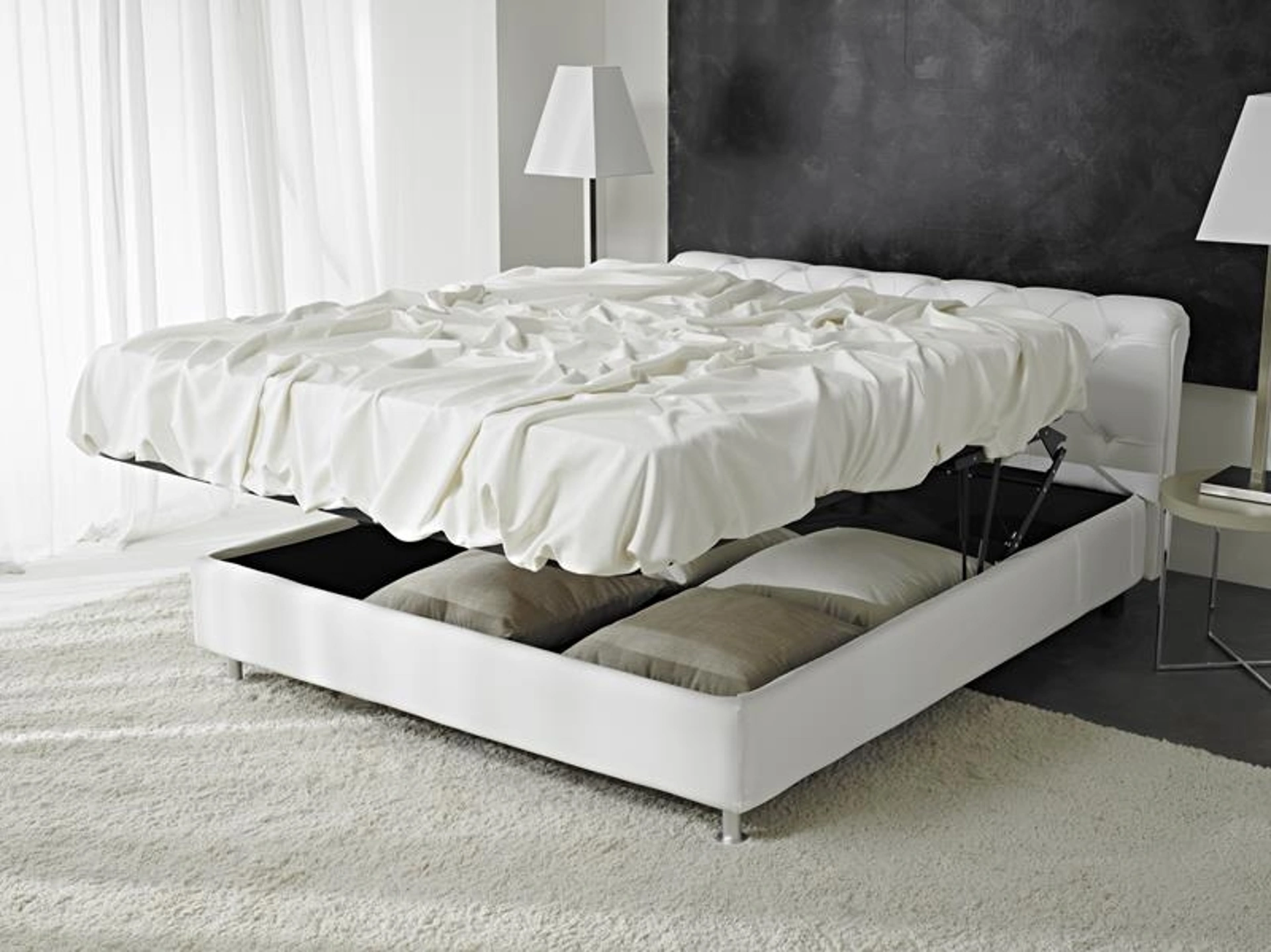 I Letti matrimoniali con contenitore della firma, specialista nella realizzazione di Arredamento Casa per la zona notte, sono progettati per essere abbinati a mobili e complementi di ogni genere, come armadi e comodini, lampade e piantane. Il Letto classico Nuvola di Hoppla ricrea uno spazio accogliente e confortevole in ogni camera, assicurandoti il sonno più profondo e uno stile unico. Scegli cromie e finiture e realizza il tuo concept d’arredo nella camera, progettandola proprio come l'avevi sognata. Durante la scelta di un buon modello di letto, valuta con attenzione le sue misure, i materiali, la forma e il suo stile rispetto al resto degli arredi. Se desideri una soluzione in ecopelle, il modello mostrato in foto è caratterizzato da materiali durevoli e linee decise, che invitano a goderti un sonno tranquillo e ristoratore.