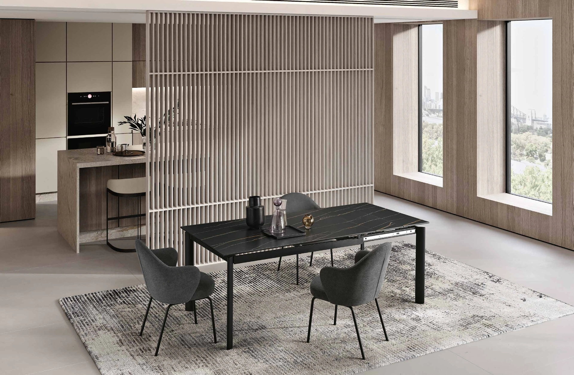 Scegli i mobili e oggetti accessori in gres dei migliori brand per completare con praticità i tuoi spazi senza mai sacrificare l'estetica. Se vuoi cambiare i mobili moderni che hai in casa o acquistarli per la prima volta, da noi potrai toccare con mano le soluzioni più originali in commercio. Durante l'acquisto del tavolo perfetto per te è fondamentale valutare misure, linee, materiali e stile, per ottimizzare lo spazio con grande valore estetico. In showroom ti aspetta un ricco catalogo di Tavoli allungabili dei migliori brand, tra cui anche il modello da cucina visibile in foto.