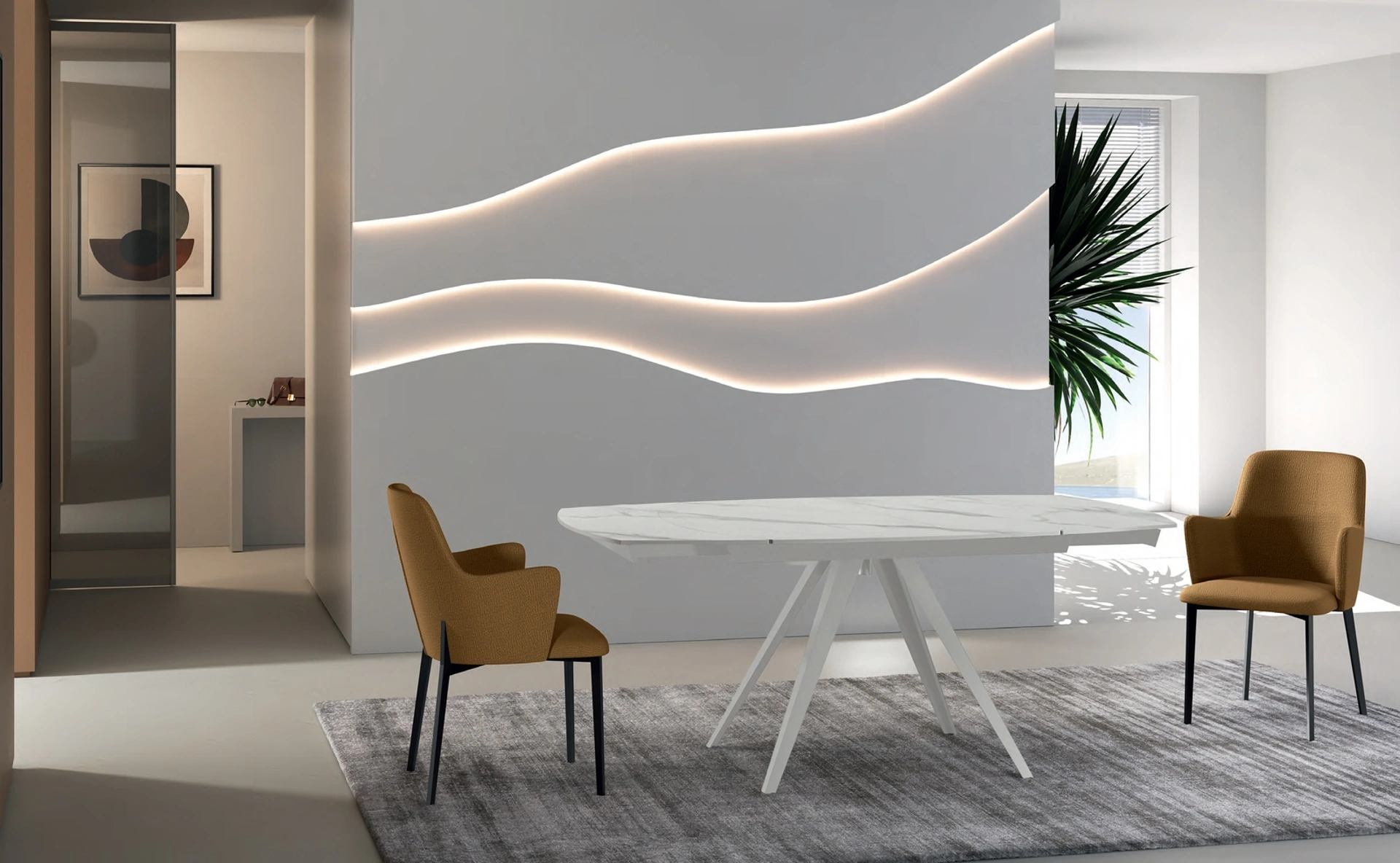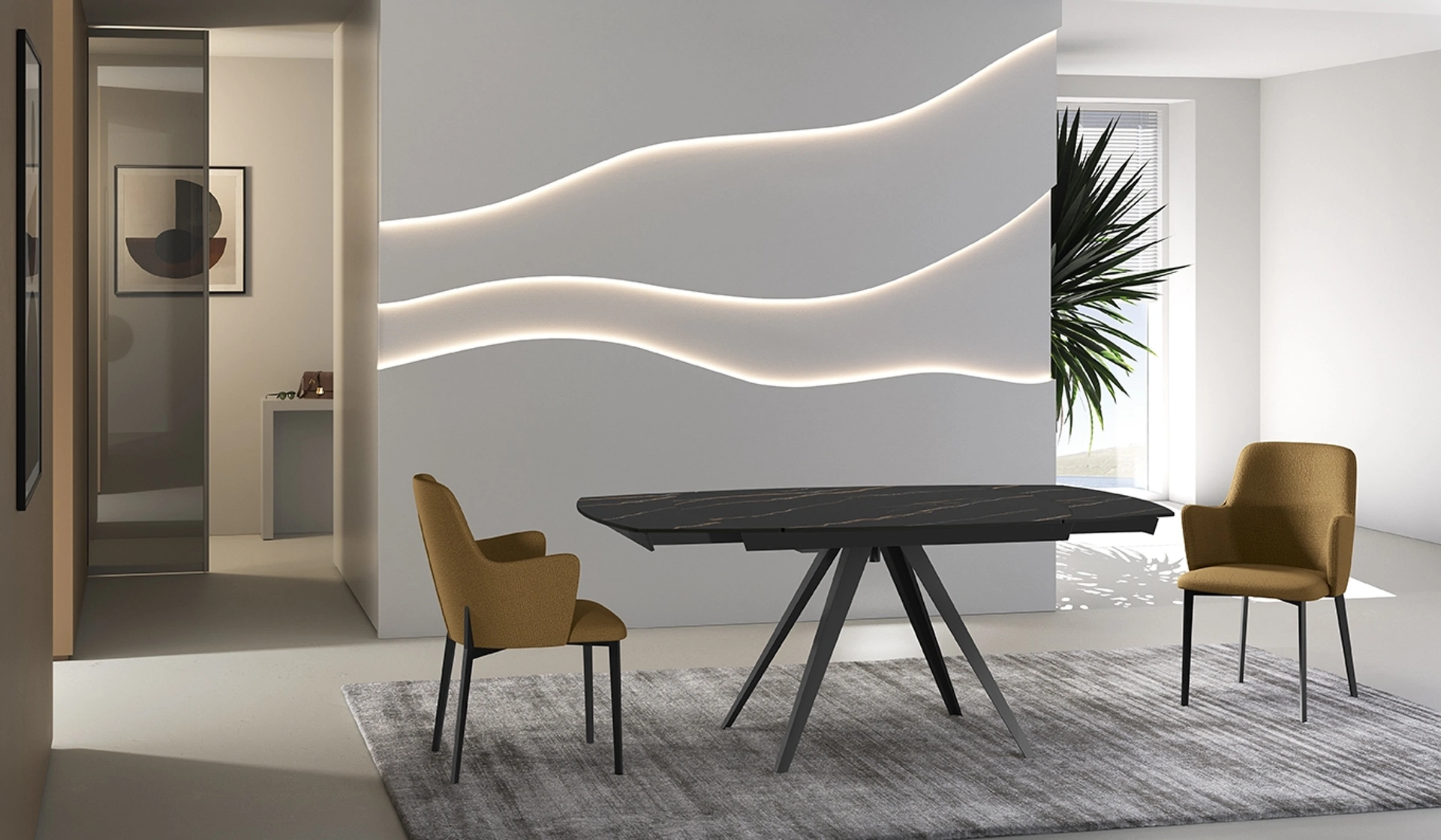 Nel nostro sito dedicato all'Arredamento Casa potrai trovare tutto ciò di cui hai necessità per il living o la cucina. Scegli i mobili e complementi in ceramica dei migliori produttori per ultimare con funzionalità i tuoi interni senza mai tralasciare il valore estetico. In showroom ti aspetta una ricca gamma di Tavoli allungabili dei migliori produttori, tra cui anche il modello da pranzo presente in foto. Se desideri rinnovare i pezzi di arredo moderni che hai in casa o comprarli ex novo, da noi potrai vedere dal vivo le soluzioni più esclusive in commercio.