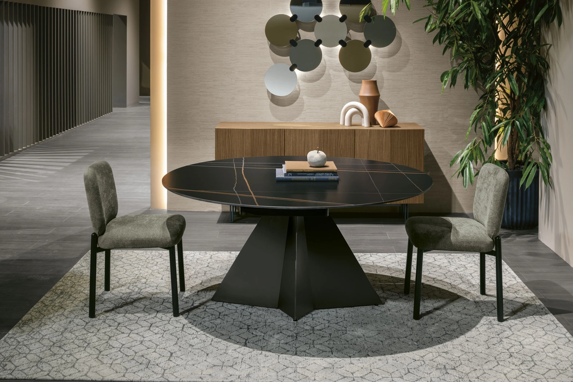 Il noto e rinomato brand Target Point, leader nella produzione di mobili in gres, ha scelto per la sua linea una grande varietà di finiture, linee e cromie. Un modello come quello in foto, in abbinamento alle giuste sedute, saprà arricchire lo stile delle stanze domestiche dedicate in assoluto all'ospitalità. Tavolo rotondo allungabile Nova di Target Point: realizzato in materiali di qualità è caratterizzato dalle forme decise del top e da un basamento ricercato ed elegante. Ideali per dare vita a degli abbinamenti unici con sedute e complementi design, i Tavoli allungabili della marca sono soluzioni tra le più esclusive in commercio, ideali per il soggiorno e la cucina.