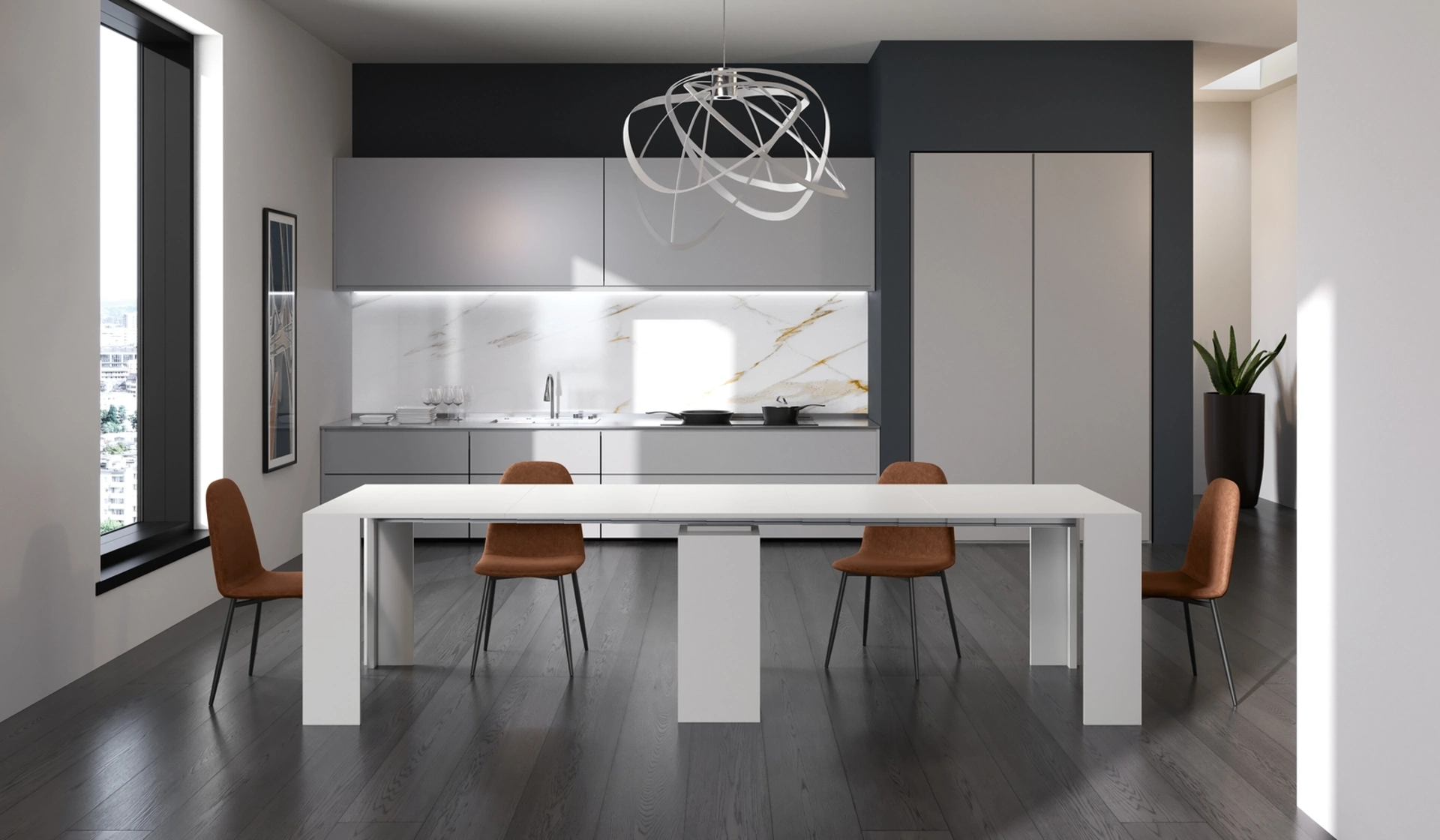 Durante la scelta del tavolo ideale per te bisogna valutare dimensioni, forme, materiali e stile, per organizzare al meglio lo spazio con un'ottima resa estetica. Se vuoi sostituire i mobili moderni che hai in casa o acquistarli per la prima volta, da noi potrai vedere dal vivo le soluzioni più esclusive in commercio. Prediligi i mobili ed elementi accessori in melaminico dei migliori brand per completare con praticità i tuoi locali senza mai tralasciare il valore estetico. In showroom ti sta aspettando un ricco catalogo di Tavoli consolle dei migliori brand, tra cui anche il modello da pranzo mostrato in foto.