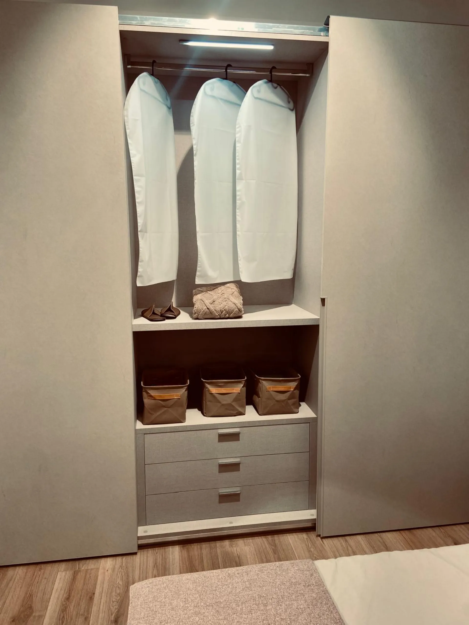 La Camera Filo120 si distingue per l'eleganza e la praticità del suo armadio. Realizzato con materiali di alta qualità, l'armadio Filo120 è progettato per durare nel tempo e resistere all'usura quotidiana. Il suo design moderno e minimalista lo rende perfetto per qualsiasi tipo di arredamento, da quello più classico a quello più contemporaneo. I dettagli dell'armadio Filo120 includono: