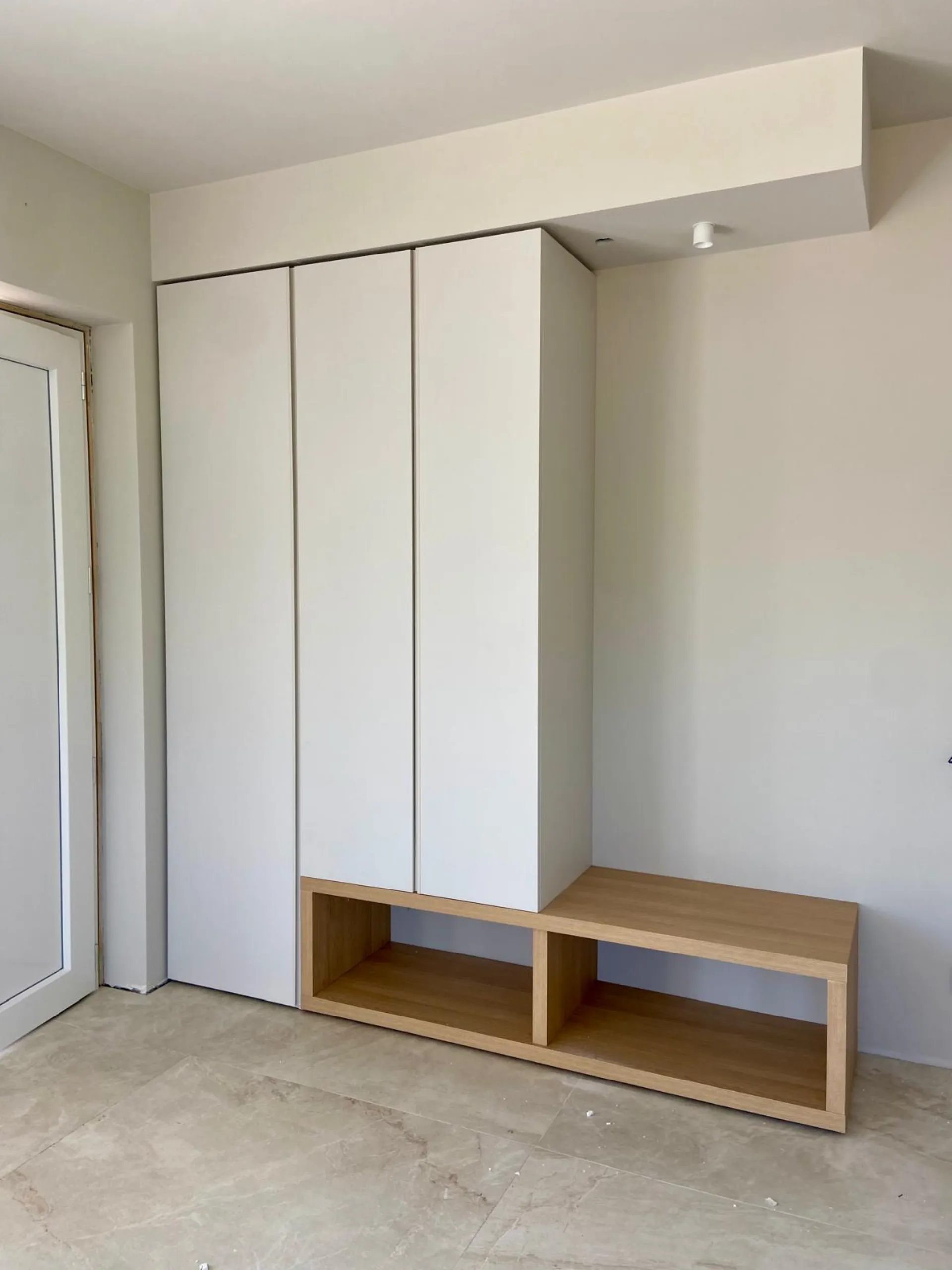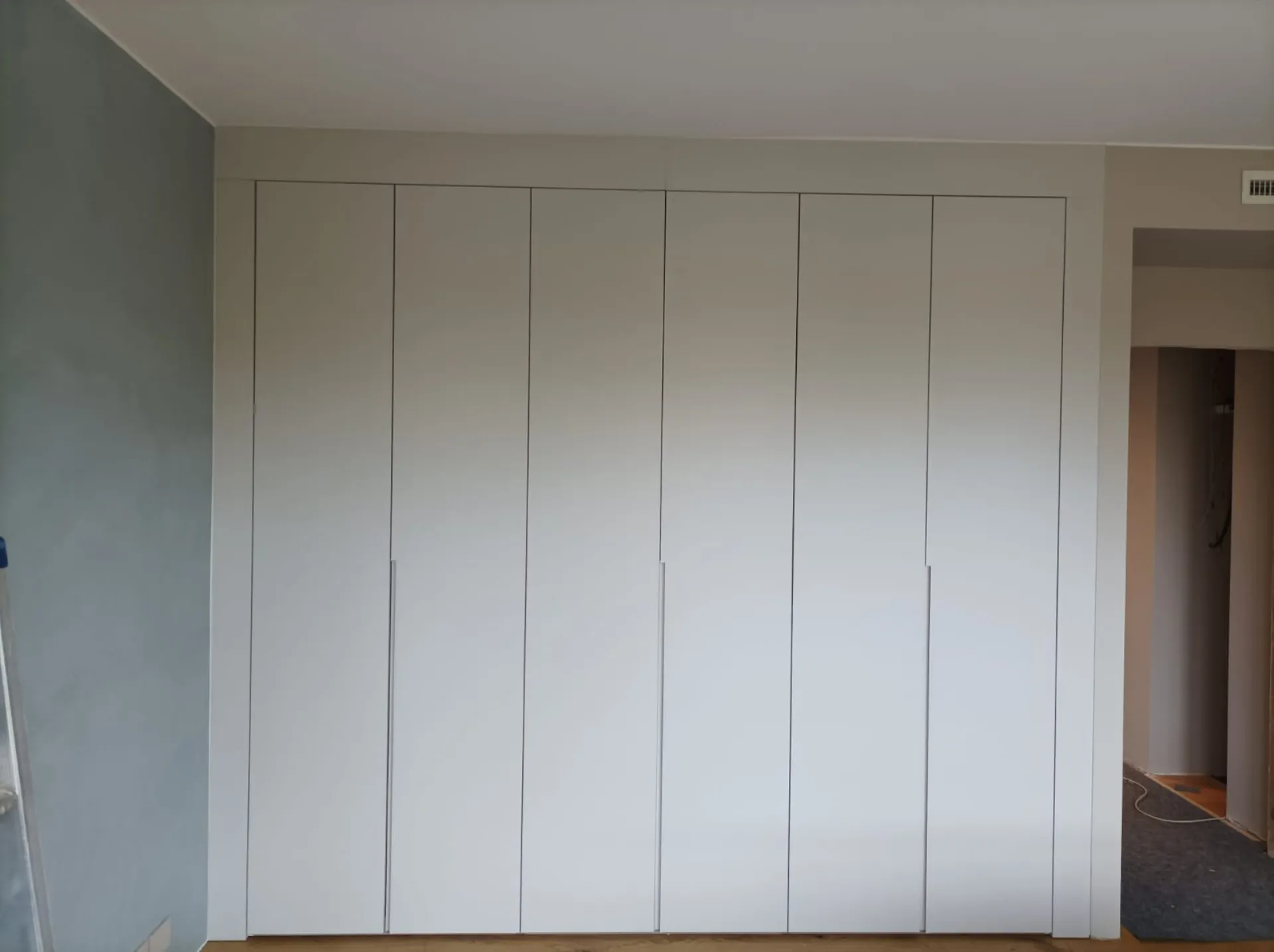 Armadio su misura lineare tortora per camera da letto con aperture a gola