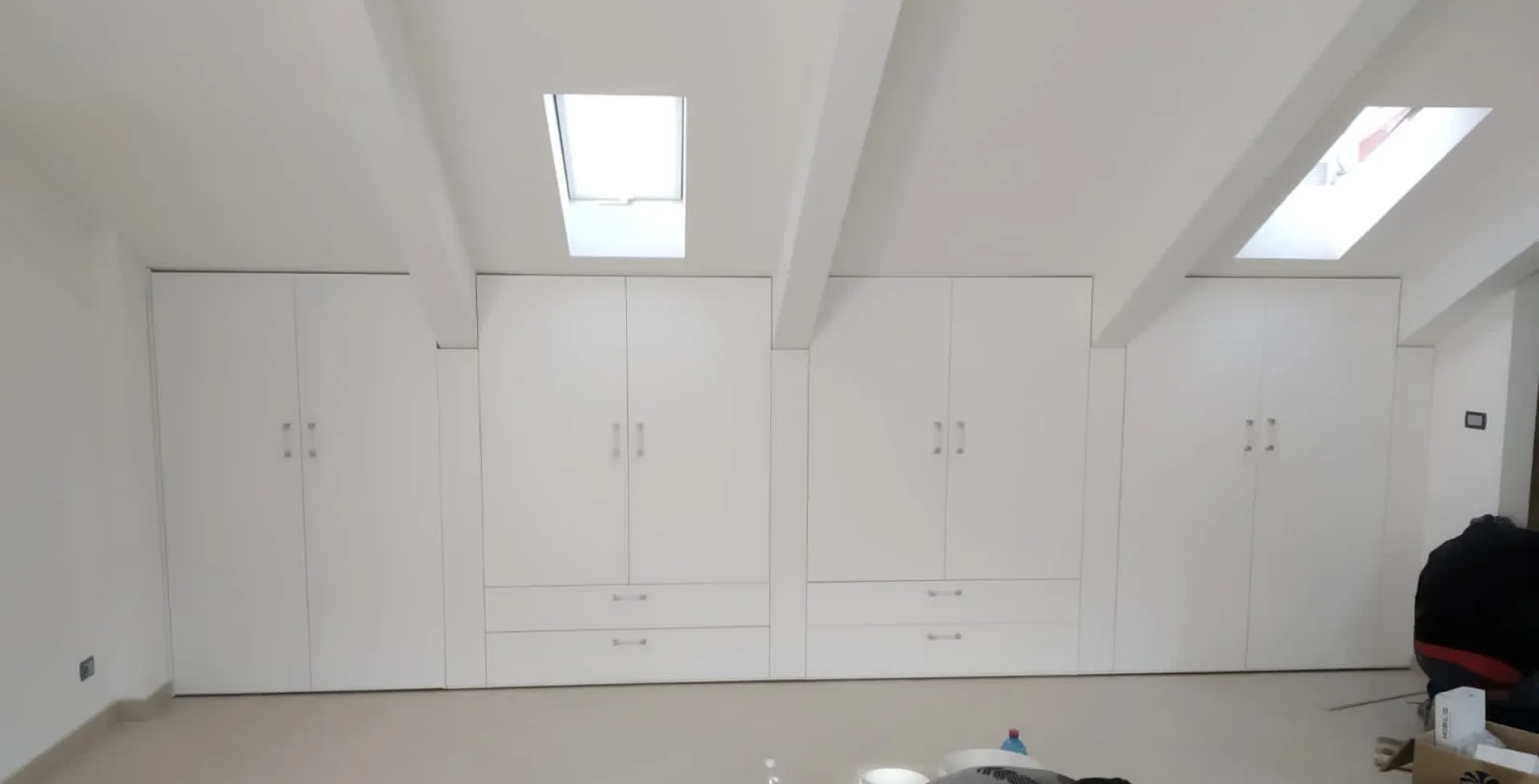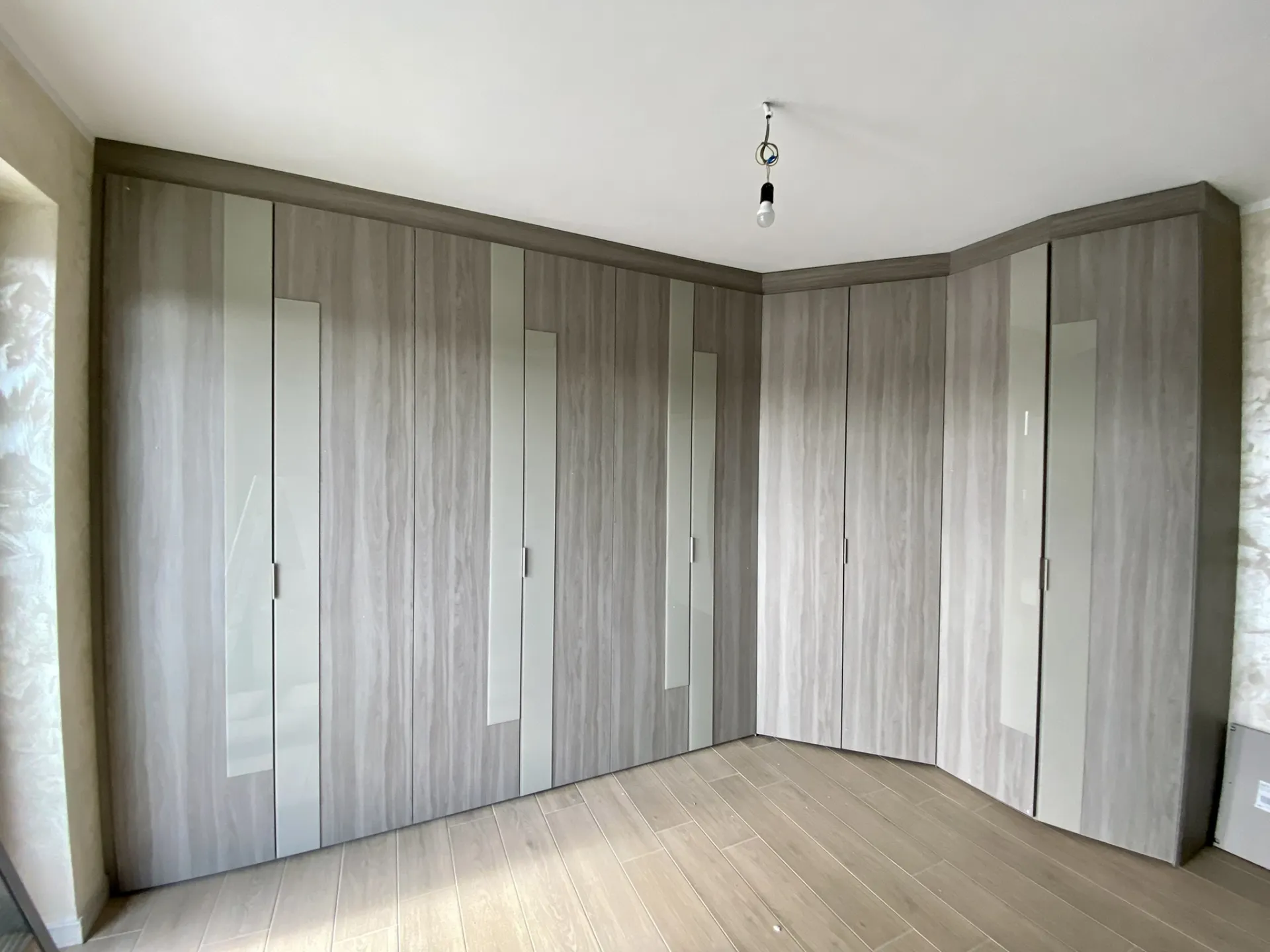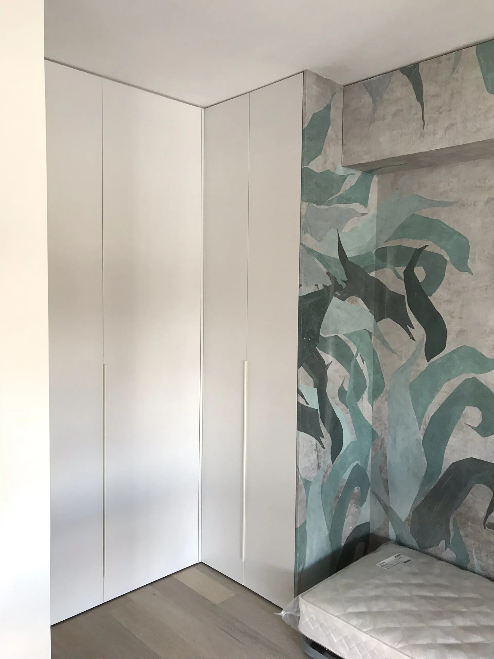 Armadio su misura per camera da letto con cabina angolare con inserti in vetro laccati