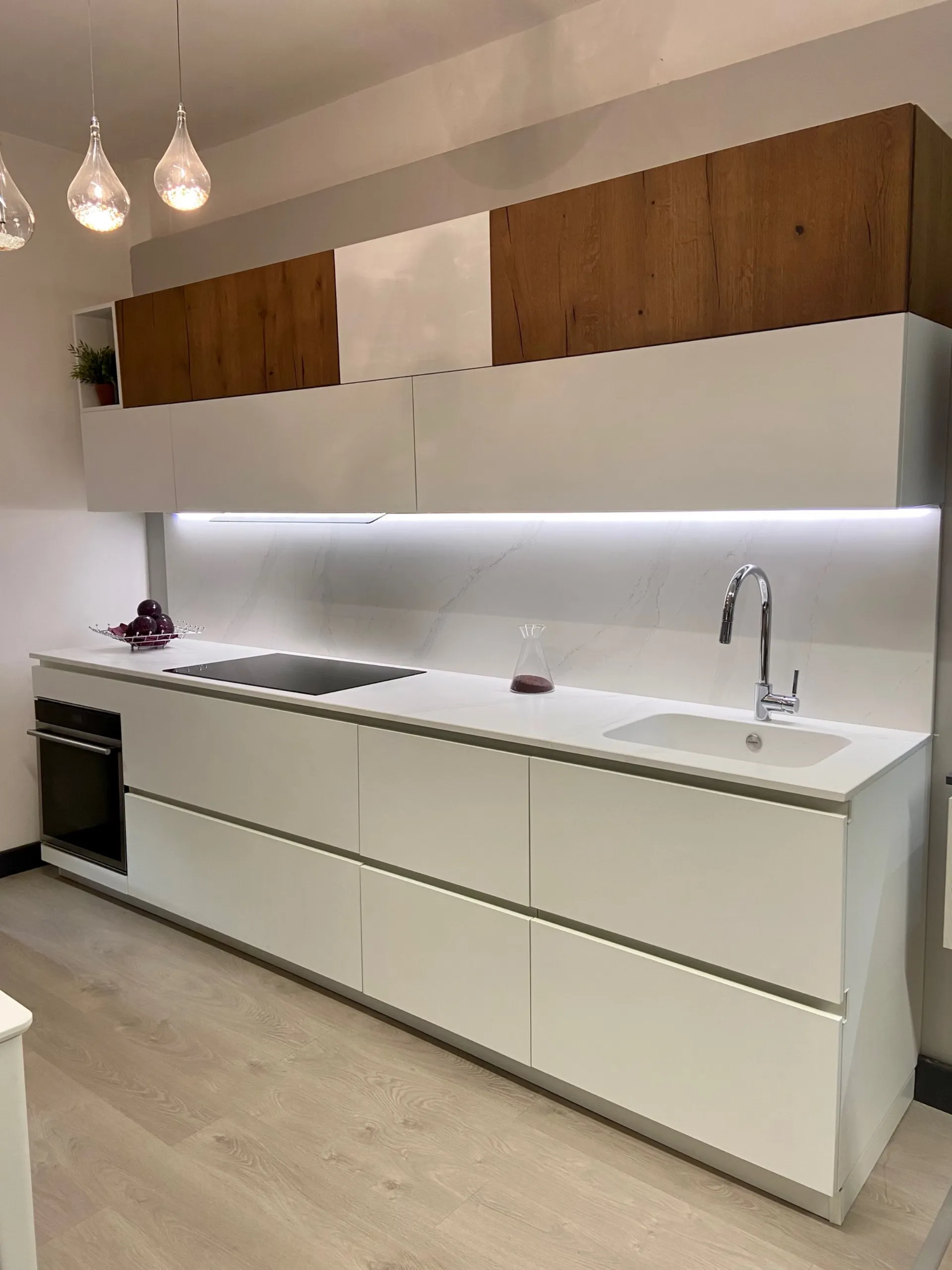 Cucina bianca e legno