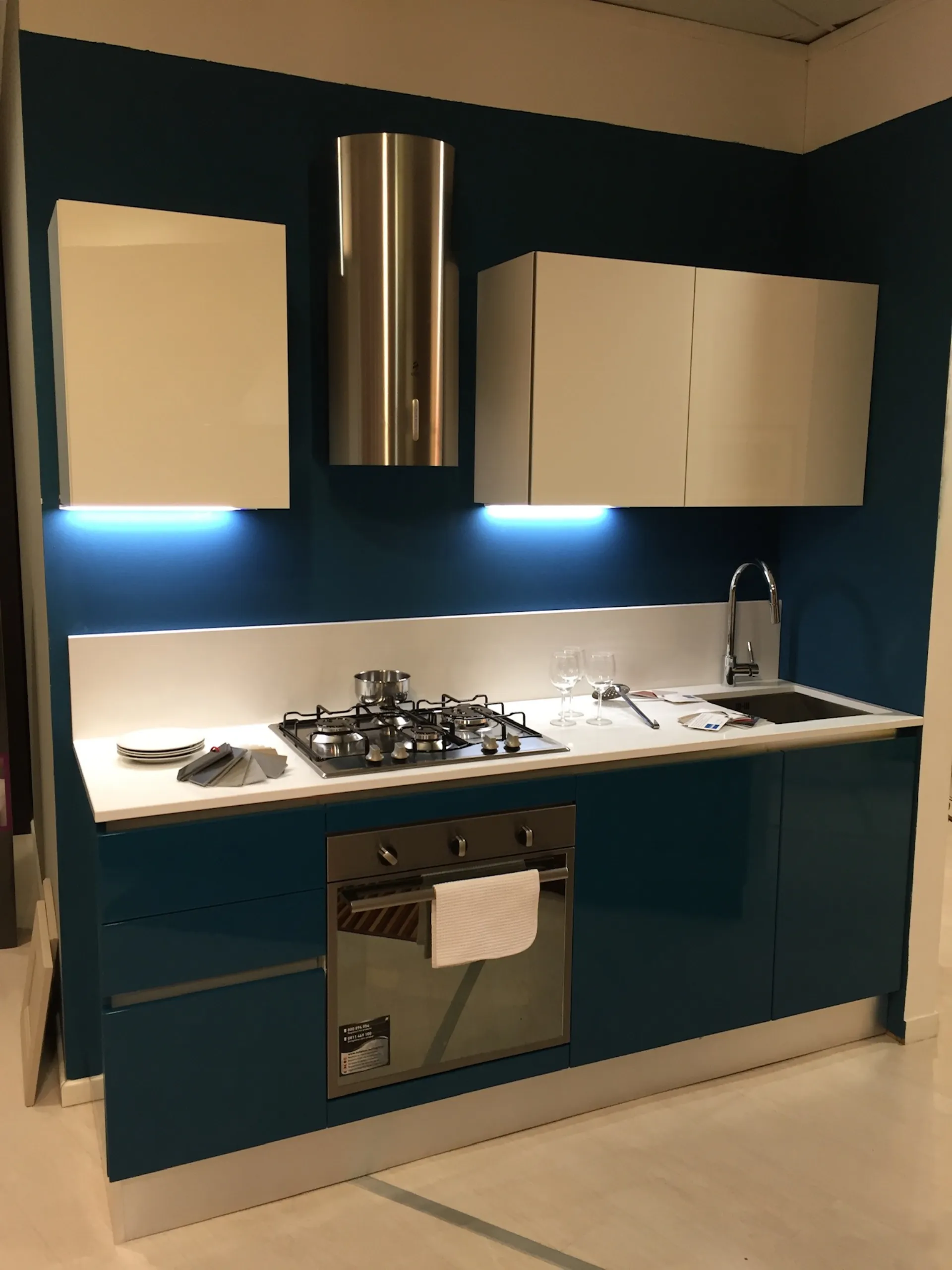 Cucina laccata petrolio lucido e bianco