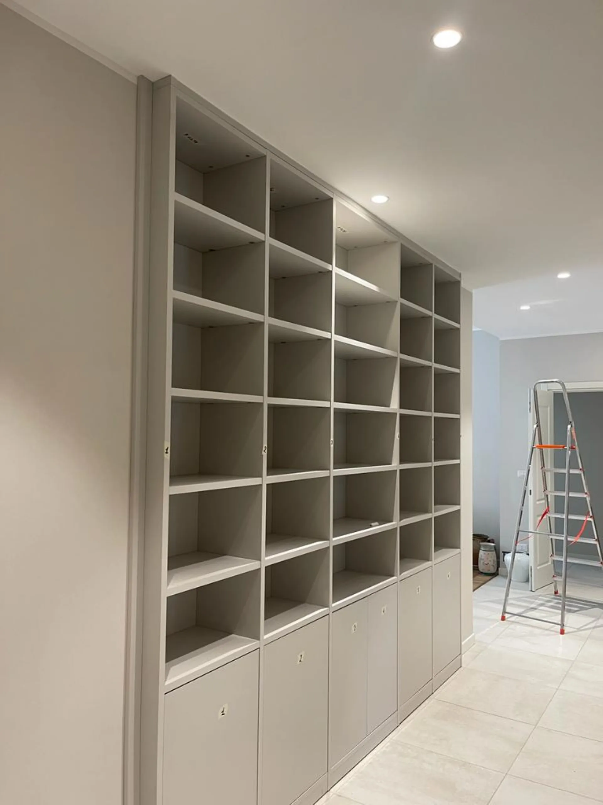 Libreria a muro su misura incassata in nicchia