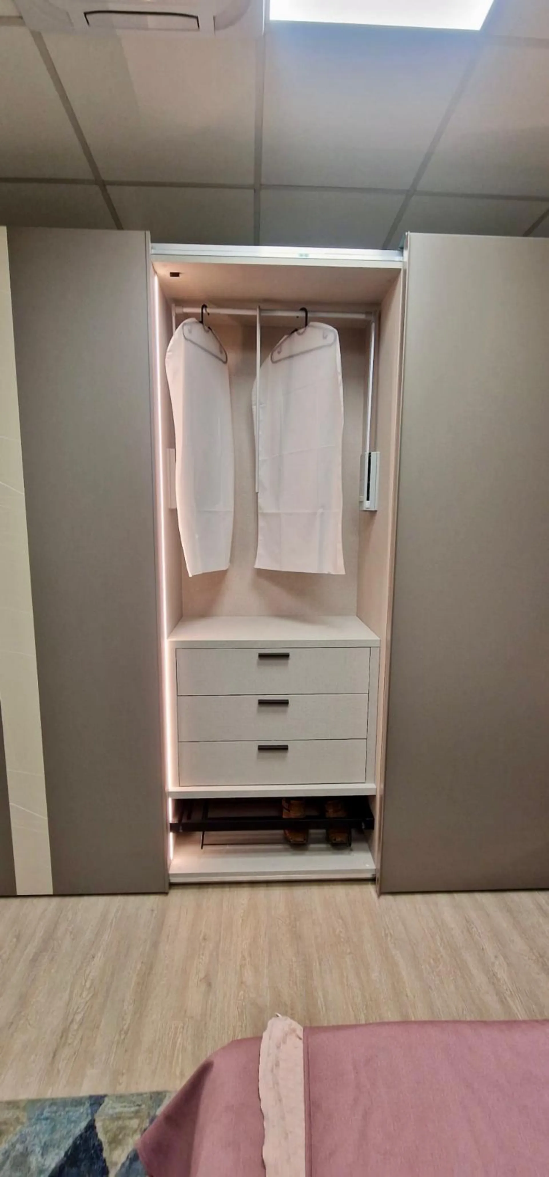 L'armadio terna di Orme Design è un elegante elemento d'arredo che si distingue per il suo design moderno ed essenziale. Realizzato con materiali di alta qualità, vanta una struttura solida e duratura. Il suo interno è suddiviso in vari compartimenti spaziosi e ben organizzati, ideali per riporre vestiti e accessori. L'armadio è inoltre dotato di una pratica chiusura a battente e di maniglie ergonomiche. Alcune delle sue caratteristiche principali sono: